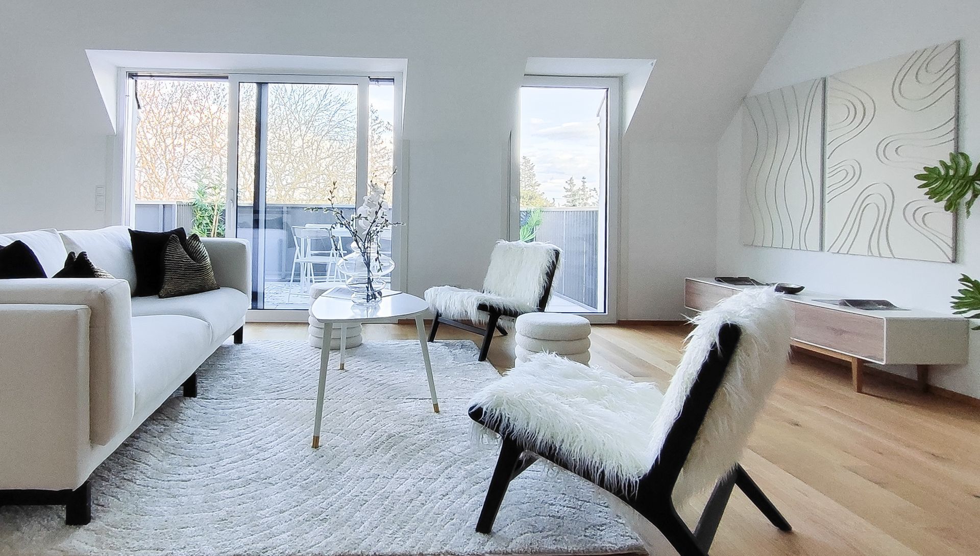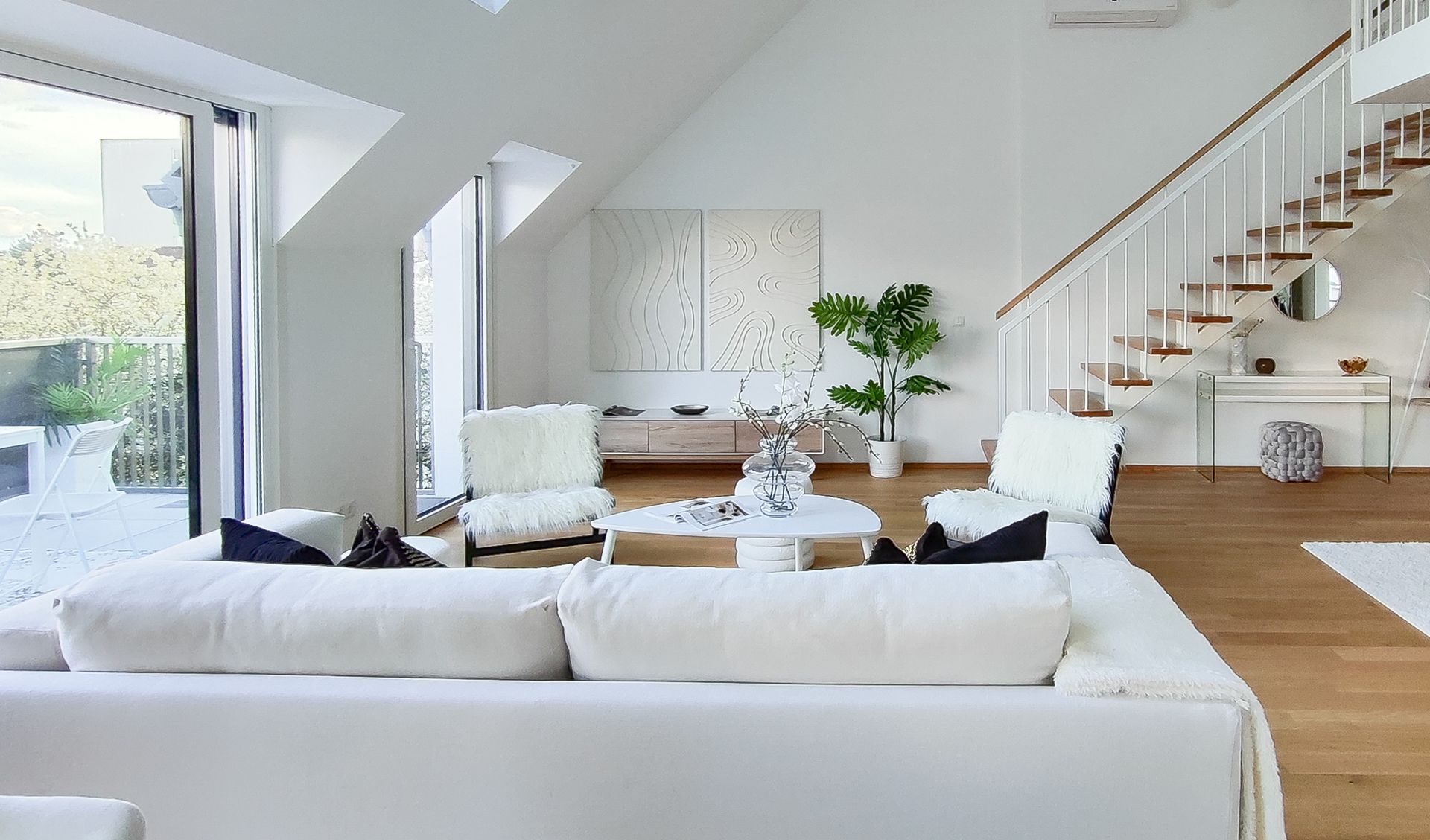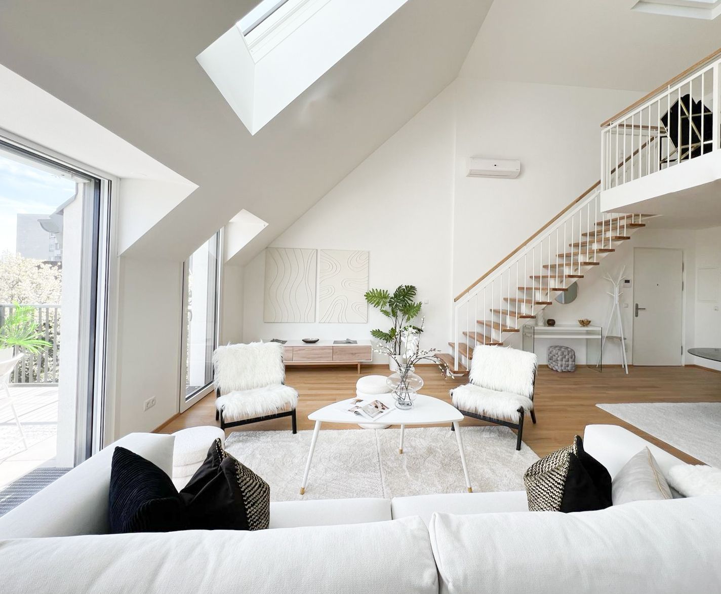 Diese außergewöhnliche Dachgeschoßwohnung in 1230 Wien wurde mittels Home Staging mit Mietmöbel und Accessoires geschmackvoll für den Verkauf aufbereitet!