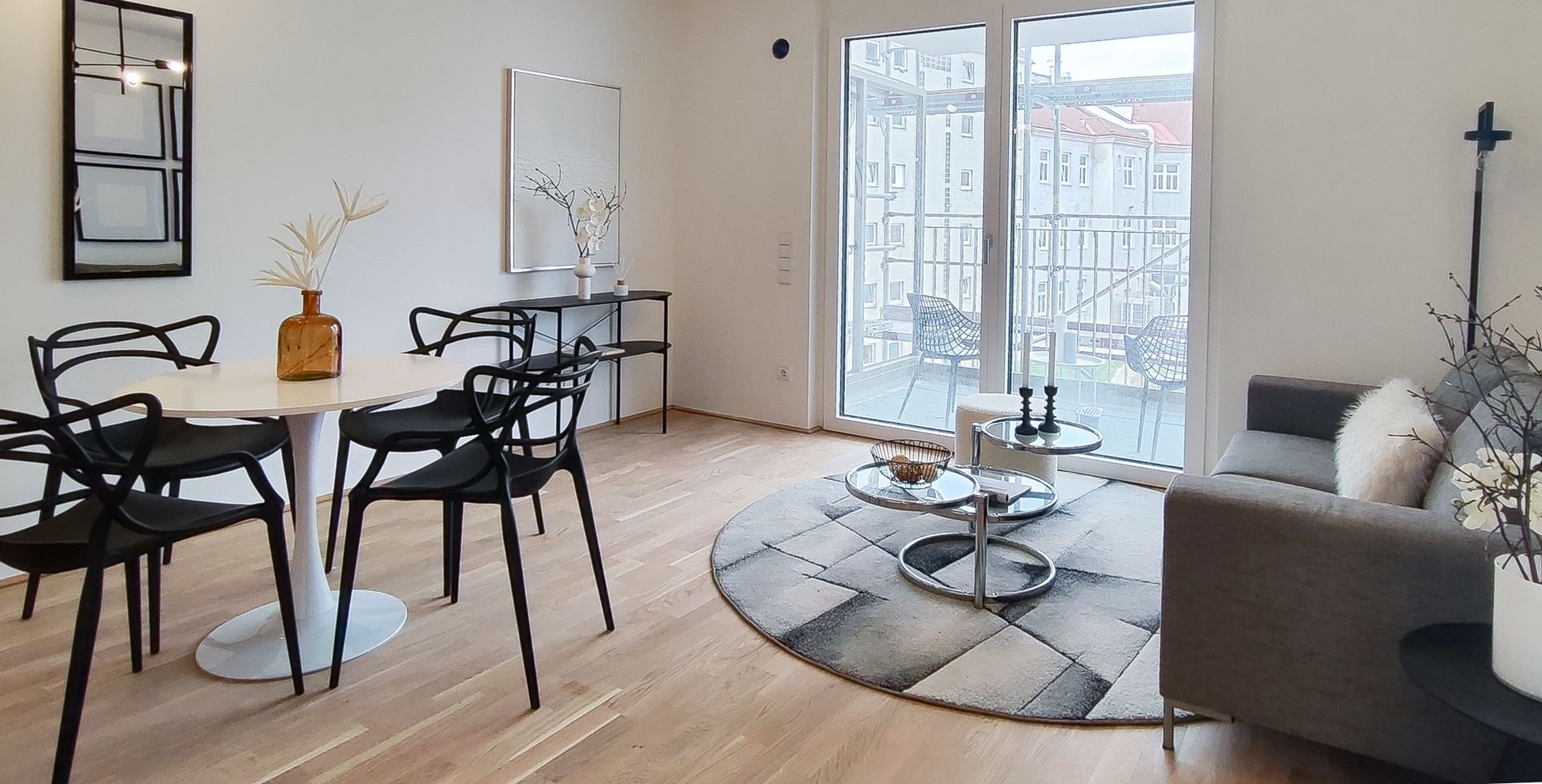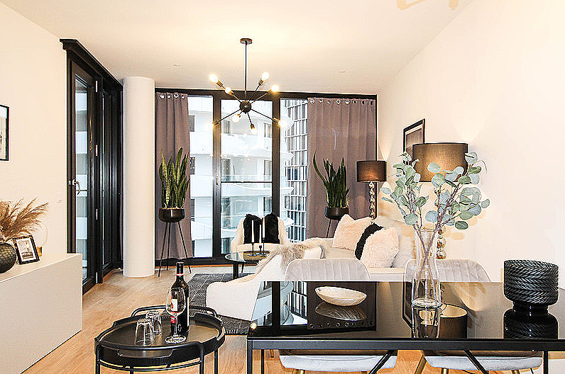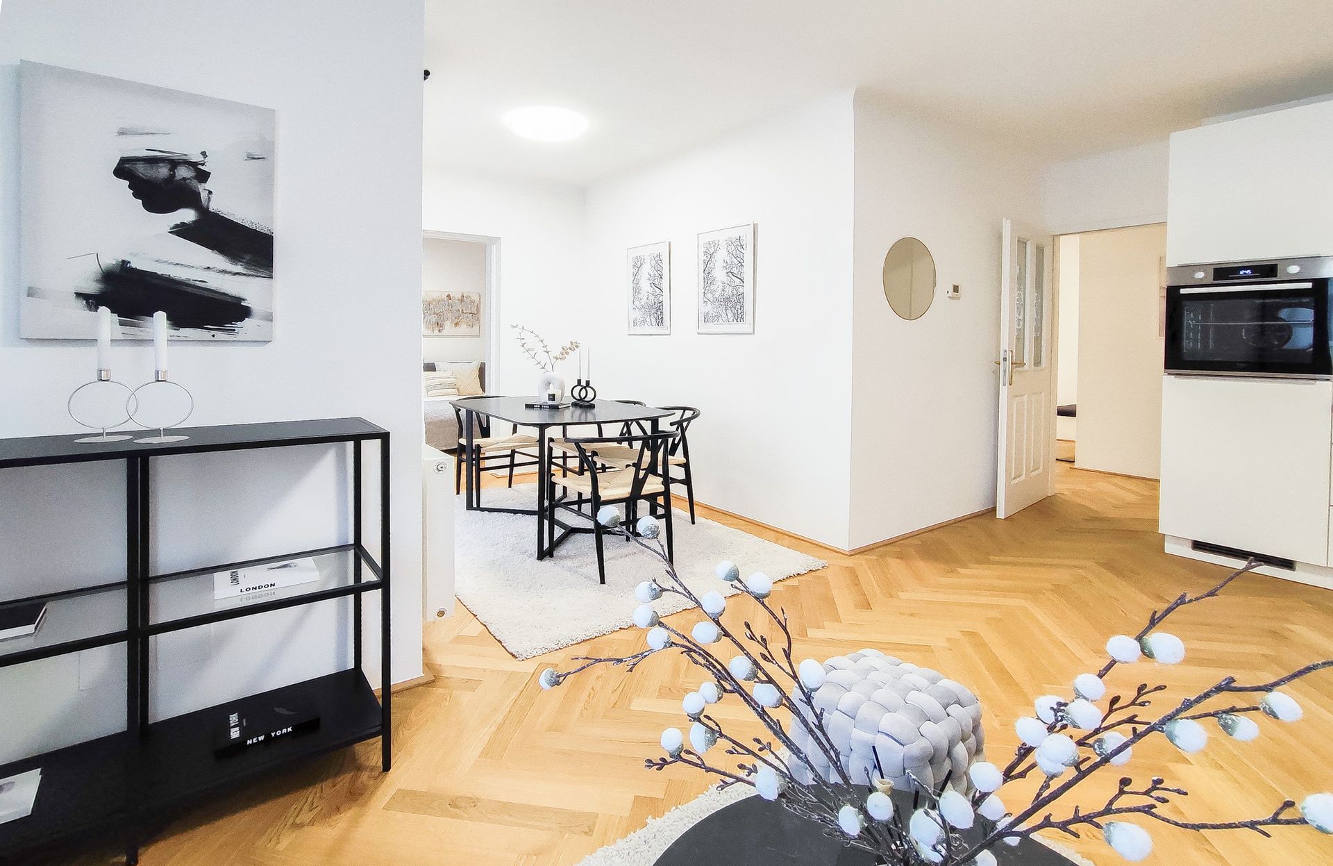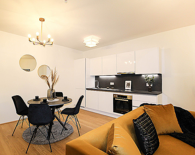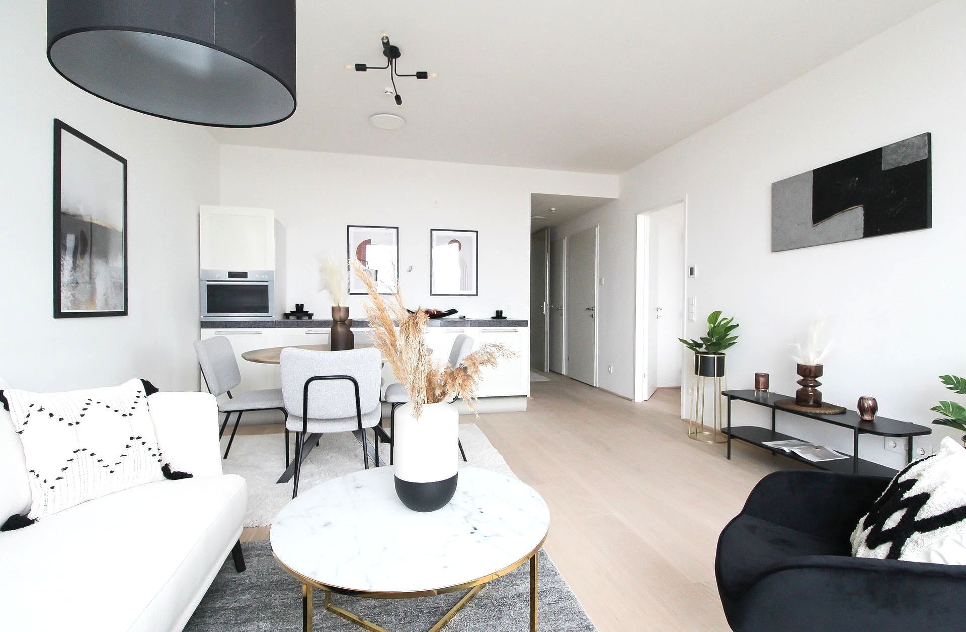 Diese stylische Neubauwohnung in 1090 Wien wurde mittels Home Staging mit Mietmöbel und Accessoires geschmackvoll für den Verkauf aufbereitet!