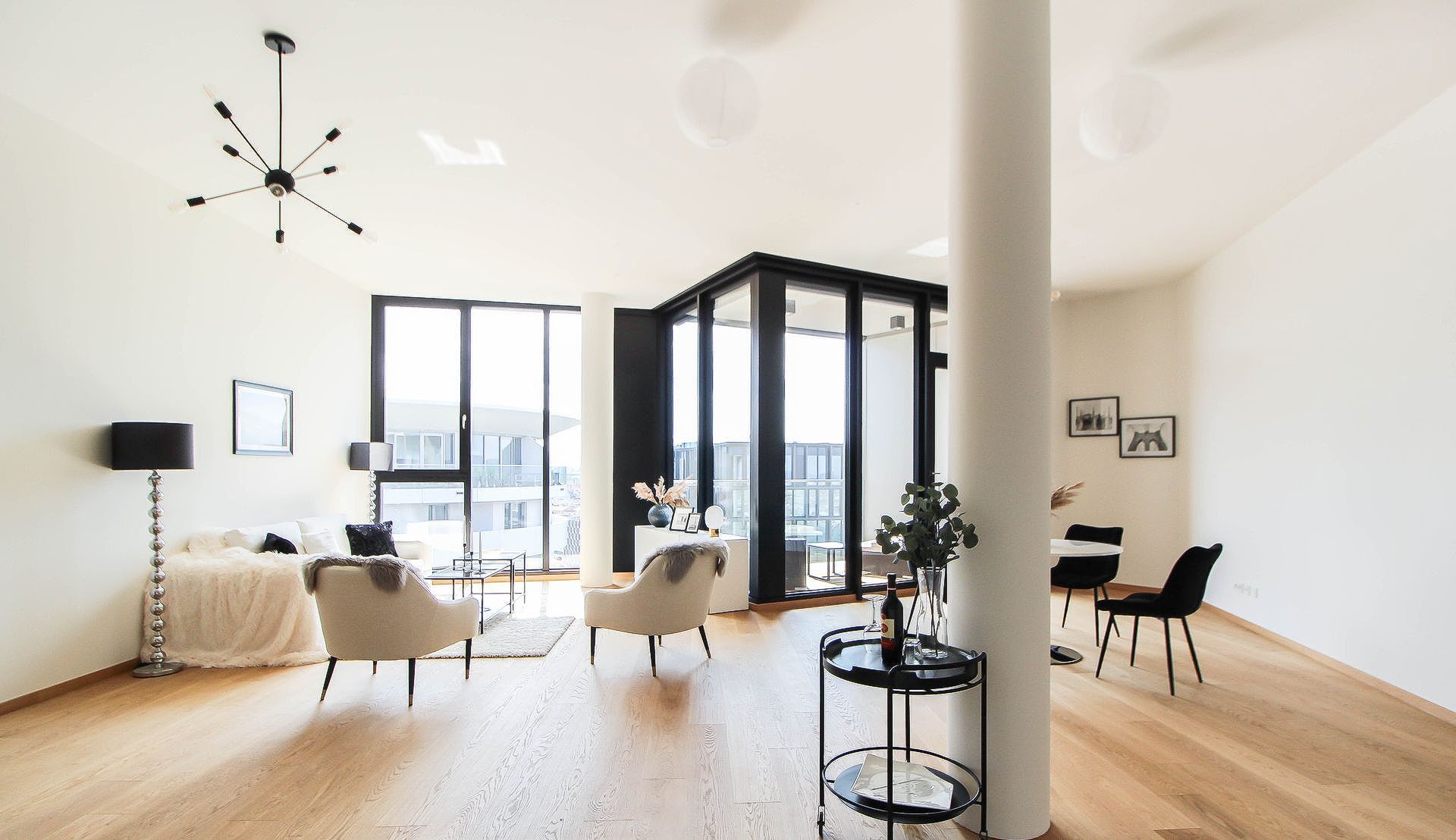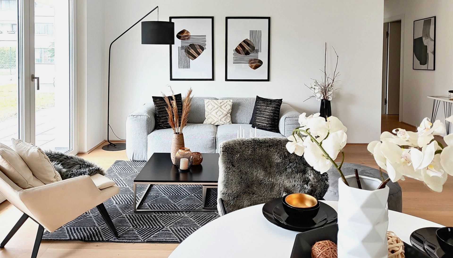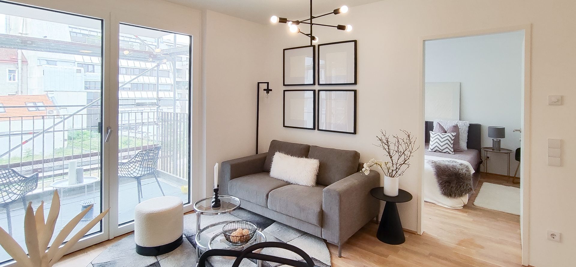 Diese stylische Neubauwohnung in 1090 Wien wurde mittels Home Staging mit Mietmöbel und Accessoires geschmackvoll für den Verkauf aufbereitet!