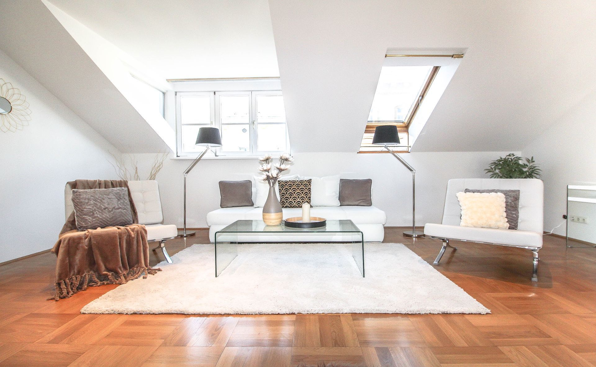 Diese schöne Dachgeschoßwohnung in 1140 Wien wurde mittels Home Staging mit Mietmöbel und Accessoires geschmackvoll für den Verkauf aufbereitet!