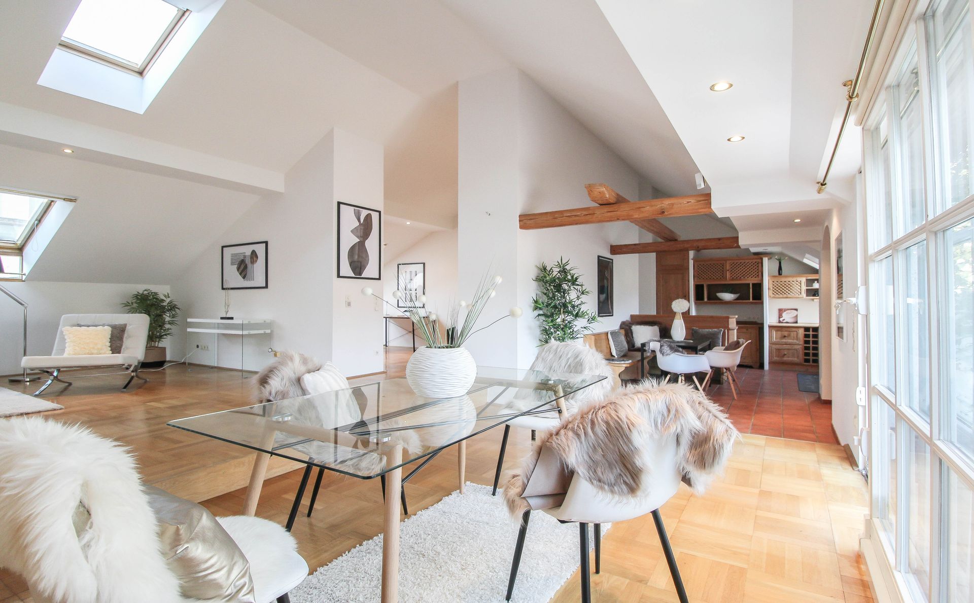 Diese schön geschnittene Wohnung mit Holzdecken am Gießhübel wurde mittels Home Staging mit Mietmöbel und Accessoires geschmackvoll für den Verkauf aufbereitet!